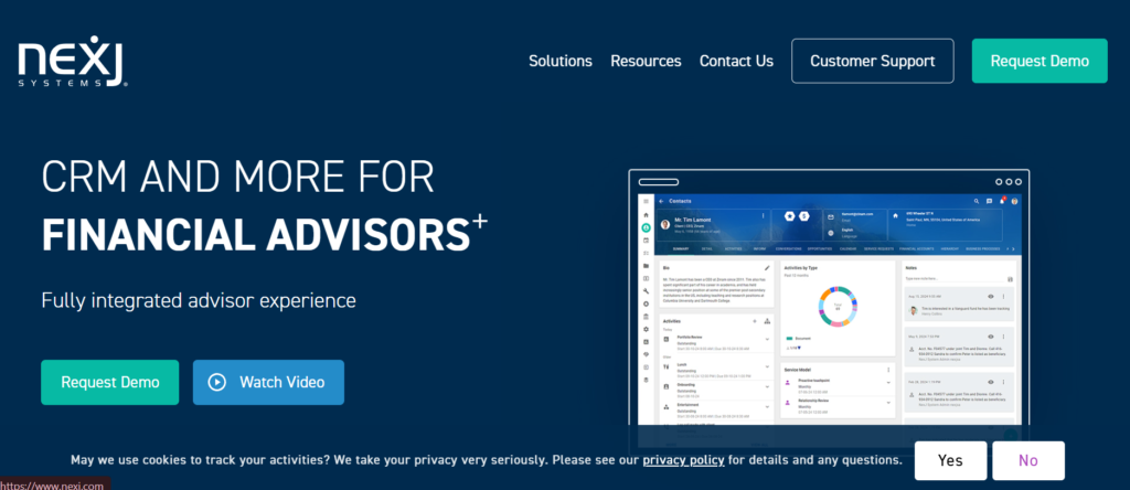 | NexJ CRM | High-end CRM for large advisory practices | Custom | No | 4.2/5 |