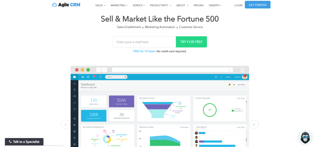| Agile CRM | All-in-one needs | £8.99/user | Yes | Email + CRM |