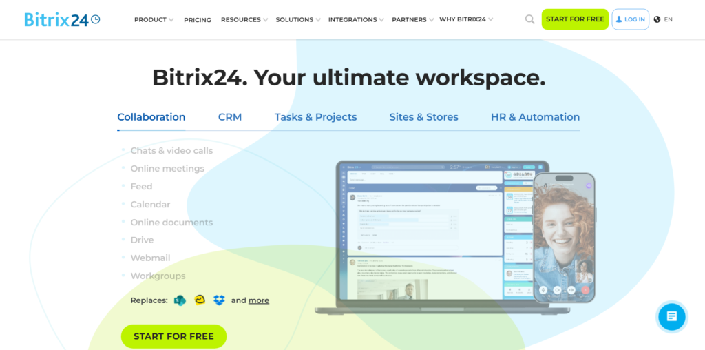 | Bitrix24 | Team collaboration | £0 | Yes | CRM + intranet |