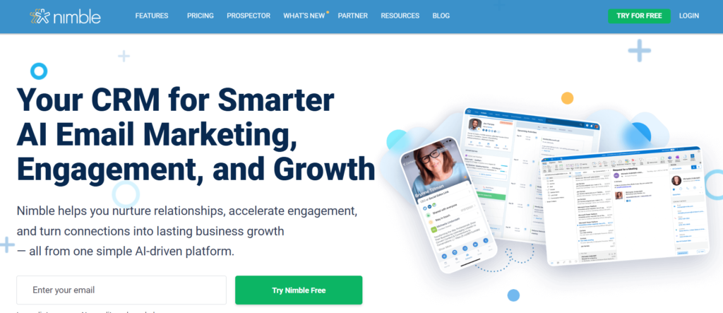 | Nimble | Social media-focused agents | Social media integration, lead management, email tracking | £14.99/user/month | 4.3/5 |