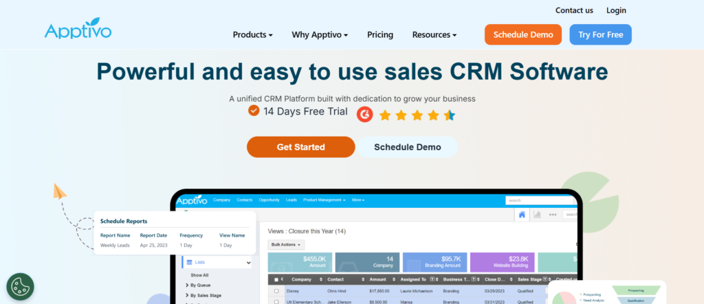 Apptivo is ideal for small businesses and real estate agents who need a flexible CRM solution that also includes project management and invoicing tools. It’s especially useful for businesses with more complex workflows.