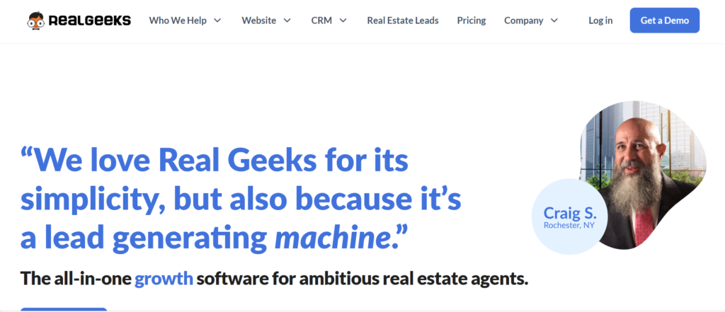 | Real Geeks | Real estate agents, marketing automation | Lead generation, IDX website integration, automated follow-ups | £150/month (starts) | 4.5/5 |
