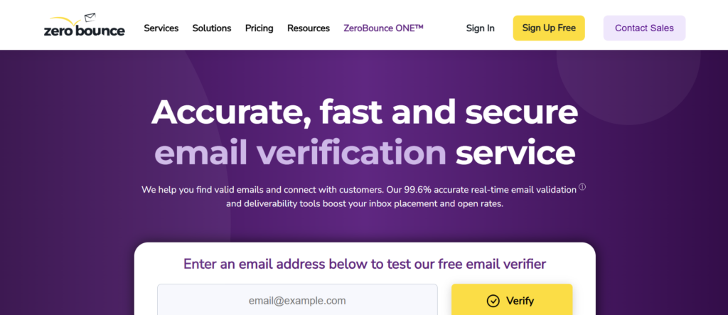 ZeroBounce is a widely used option among email verification tools for sales teams that depend on cold outreach and CRM-driven prospecting. It is built to reduce hard bounces, identify risky addresses, and protect sending domains before damage shows up in campaign metrics. Sales teams typically use it before loading leads into outreach tools or CRMs.