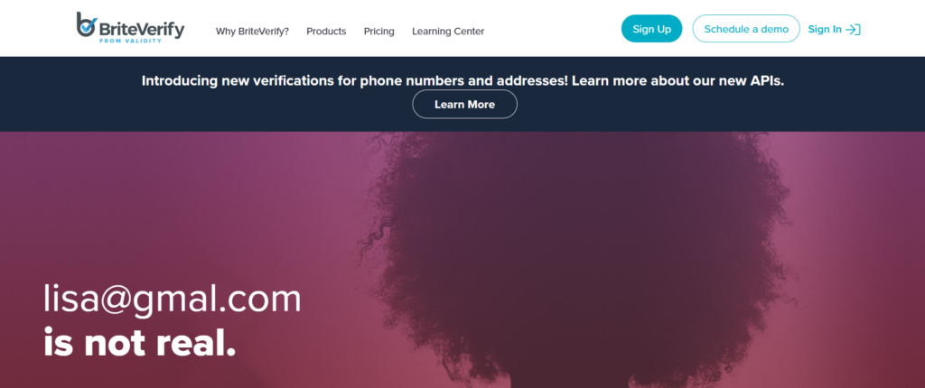 | BriteVerify | Enterprise sales | £0.01 | No | Real time API | Yes |