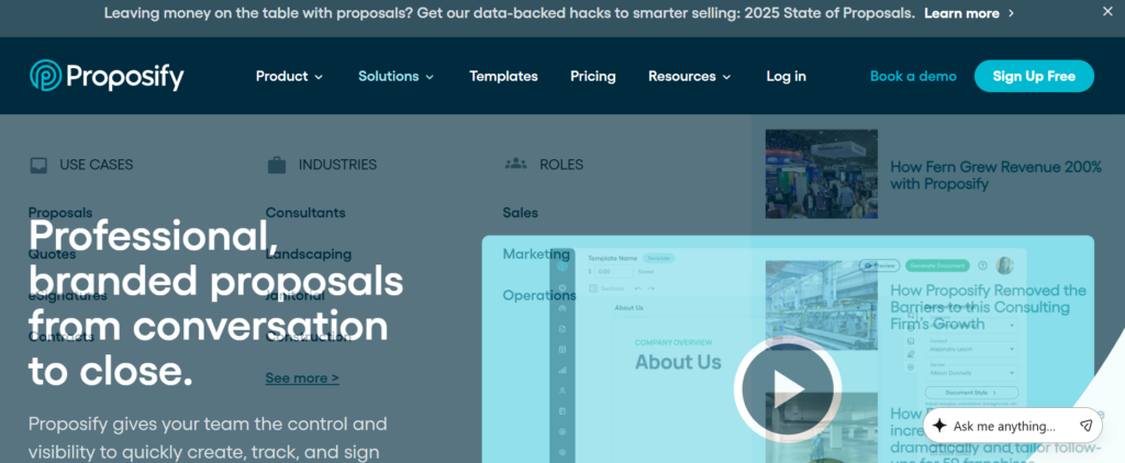 | Proposify | Branded proposals | $49 per user pm | Yes | Advanced design control | Yes |
