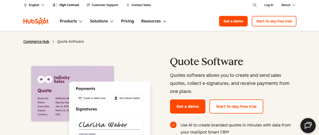 | HubSpot Quotes | HubSpot CRM users | $20 per seat pm | Limited | Native CRM sync | Native |