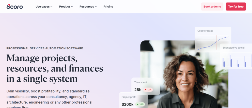 | Scoro | Agency ERP users | $26 per user pm | Demo | Project cost tracking | Yes |