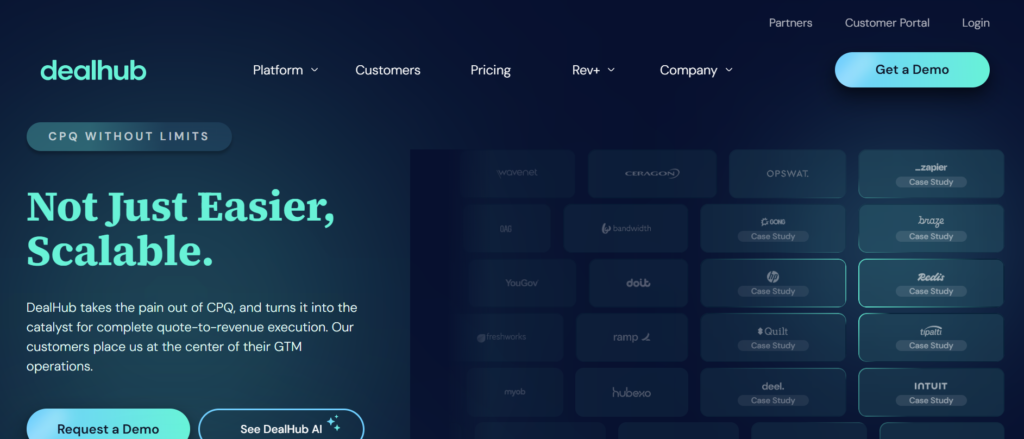 | DealHub | Complex B2B sales | Custom pricing | Demo | Guided selling workflows | Yes |