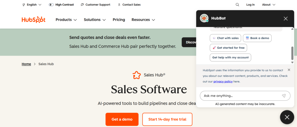 | HubSpot Sales Hub | CRM integration | $20/user/mo | Yes | Built in CRM | 4.5 | Web |