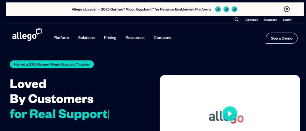 | Allego | Remote sales teams | $40/user/mo | Yes | Video collaboration | 4.4 | Web |