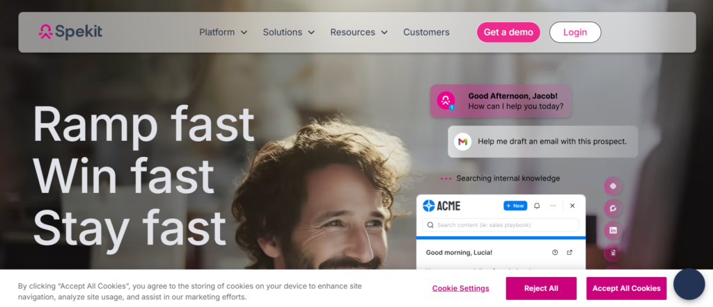 | Spekit | Sales onboarding | $20/user/mo | Yes | In app training | 4.5 | Web |