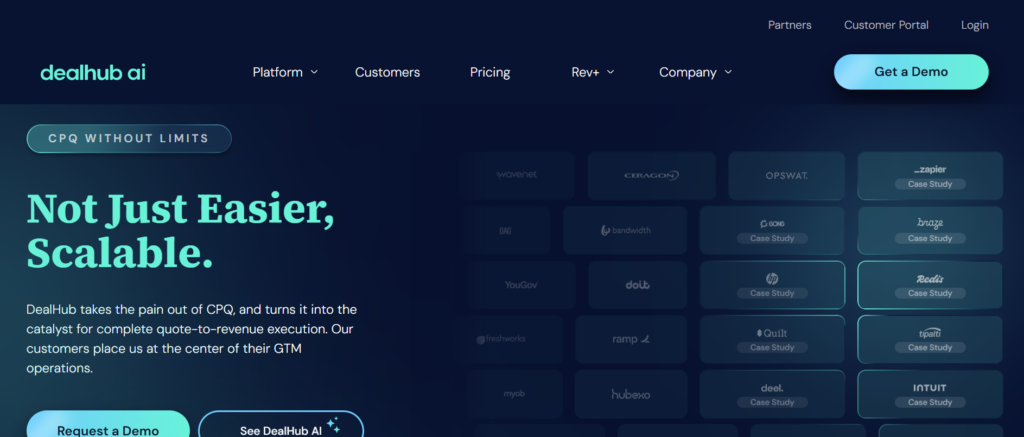 The platform allows sales representatives to generate accurate quotes, proposals, and contracts through automated workflows. Businesses researching DealHub review, DealHub pricing, DealHub alternatives, or DealHub vs Salesforce CPQ often evaluate it for its pricing automation capabilities.