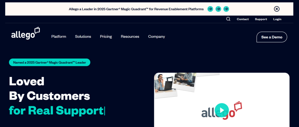 | Allego | Sales learning programmes | $29/month | Yes | Yes | 4.3 |