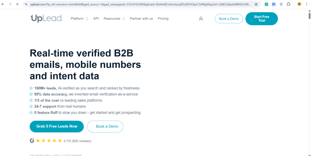 | UpLead | Verified leads | 74 | Yes | 4.6 |