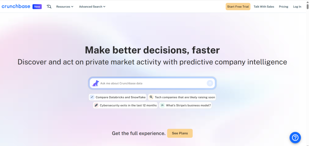 Crunchbase pricing starts from 29 per month, with higher plans providing expanded data access and exports.